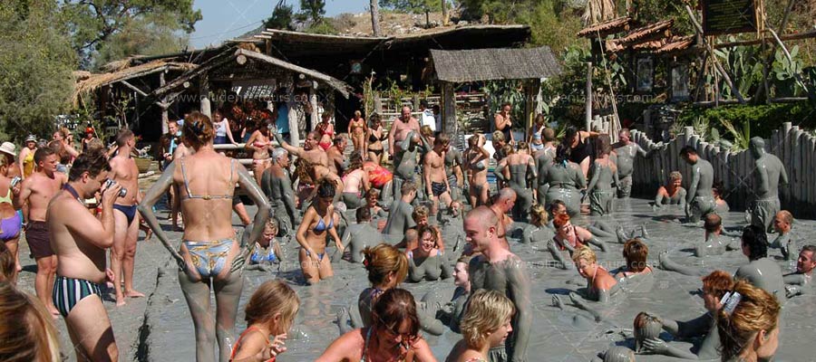 The most famous place in Dalyan is the mud baths and thermal springs, located in the south of the Koycegiz lake, at the foot of the Evienmez mountain, and around the Dalyan stream and lake. The medium-size spring is known as “Gelgirme Velibey”, the small one is known as “Riza Cavug Girmesi”. The medium-size thermal spring is preferred for its mud bath. It was newly restored and opened to tourism. This spring is famous for its beauty mud. The water boils naturally under the rocks.